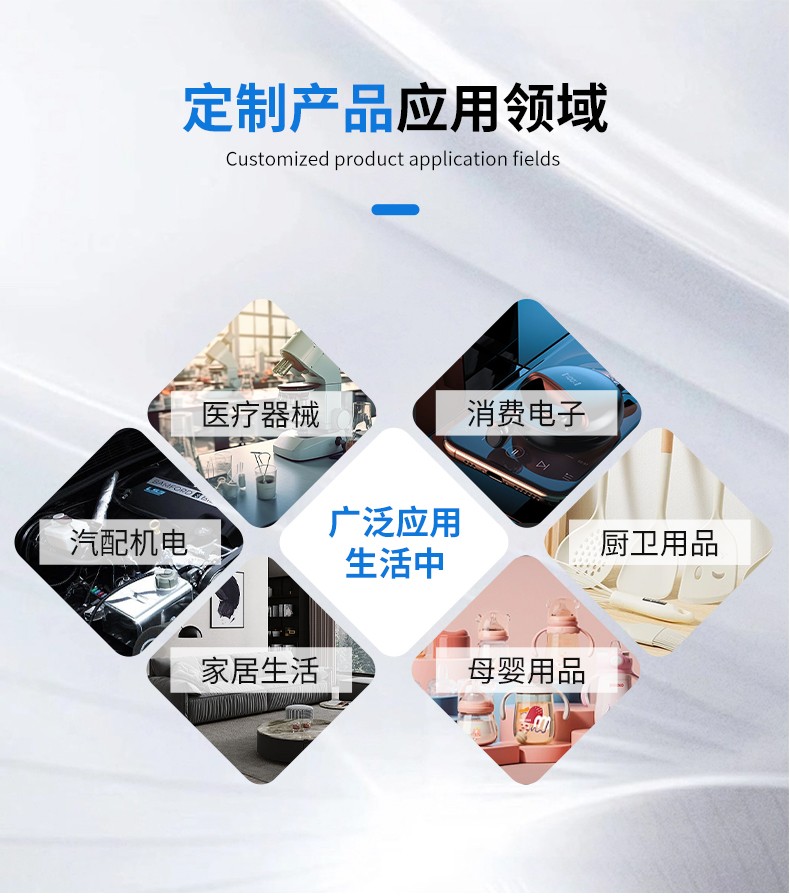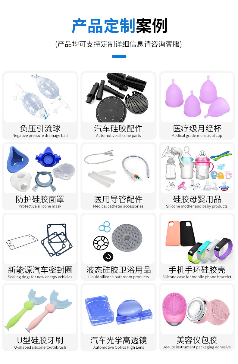 LSR液態(tài)硅膠注射成型高質(zhì)量制品,無(wú)色無(wú)毒無(wú)味,安全環(huán)保。液體硅膠具有優(yōu)異的透明度、抗撕裂強(qiáng)度、回彈性、抗黃變性、熱穩(wěn)定性、耐水、透氣性好、耐熱老化性和耐候性,同時(shí)粘度適中、便于操作,制品透明性高,可看到模具內(nèi)灌鑄材料是否有氣泡等缺陷,線(xiàn)收縮率≤0.1%,復(fù)制制品尺寸精密。我們的產(chǎn)品廣泛應(yīng)用于嬰幼兒用品、醫(yī)療用品、廚衛(wèi)烘焙、電子產(chǎn)品(密封件,按鍵)等等。